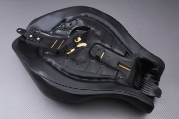 Neues Produkt, aus ABS-Kunststoff mit Schaumstoffpolsterung und Kunstleder beschichtet. Von sehr guter Herstellungs- und Verarbeitungs-Qualität. Gepolstert ja, aber damit wir alle einverstanden sind, handelt es sich allerdings nicht um eine “Komfortsitzbank”. Es bleibt ein Vordersitz fast identisch mit dem Ihres ursprünglichen Motorrads.