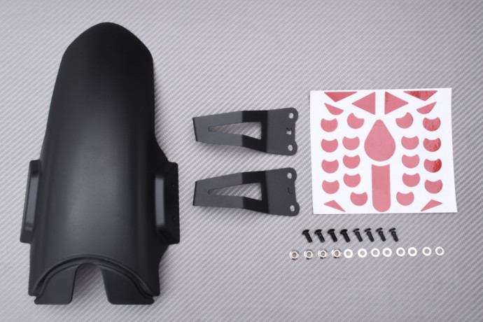 Sie werden wie jede andere Verlängerung an der Rückseite des Originalmodells befestigt, aber auch an zwei weiteren Punkten, nämlich entweder an den Bremssätteln oder an den Gabelholmen, je nach dem Motorradmodell, für das sie bestimmt sind.