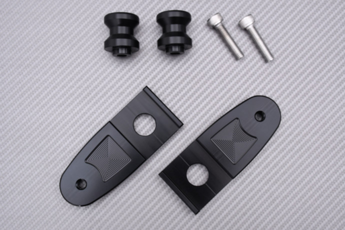 Um die Verwendung eines sogenannten „V”-Ständers zu ermöglichen, bietet AVDB diese Halterungen an, die anstelle der Originalplatten des Motorrads montiert werden.