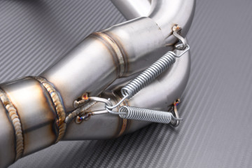 Complete / Full exhaust system in stainless steel. Increased durability thanks to the use of "stainless steel 304", and excellent finish thanks to its precision welding (T.I.G.), for an extremely reduced overall weight compared to the original kit.