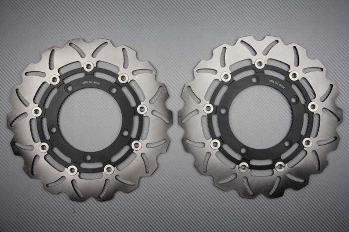 Pair of front wave brake discs, model in 310 mm external diameter, specific and adaptable to many SUZUKI. List of compatibilities per motorcycle models are available below.
