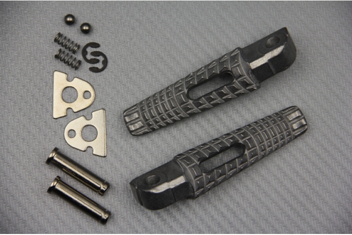 Pareja de posapiés tipo original traseros para el pasajero adaptables a numerosas SUZUKI. Encontrarás la lista de modelos de motos compatibles a continuación en la parte baja de la descripción.