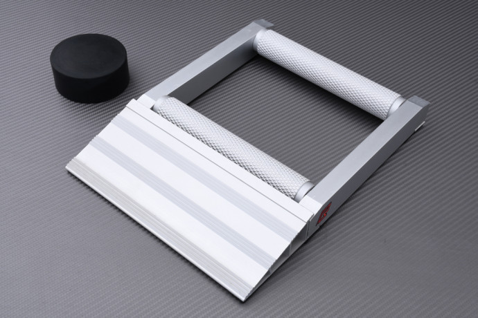 Todo lo que tienes que hacer es colocar tu rueda en los 2 rodillos, y utilizar el espaciador suministrado para el caballete lateral para evitar que la moto se incline demasiado... ¡Y eso es todo!