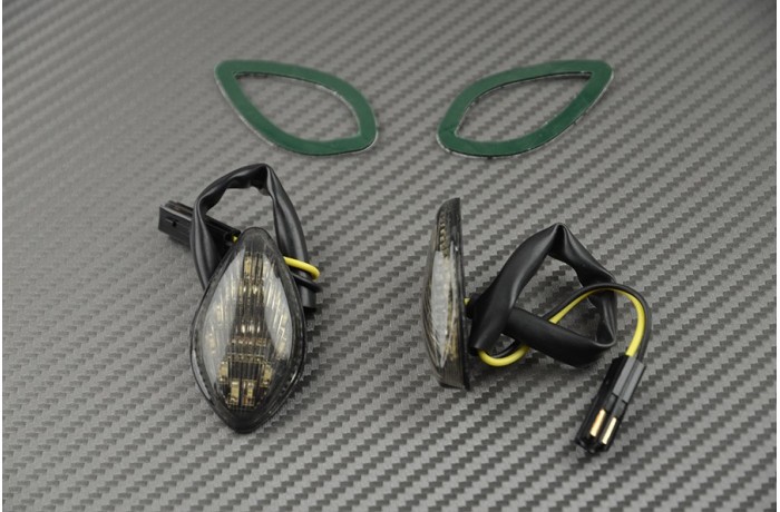 Ce modèle de cligno est à coller : ils sont fournis avec une bande autocollante double-face qui permettra de maintenir ces clignoteurs directement sur votre flanc de carénage, par-dessus l’empreinte de vos clignotants d’origine. La connexion est plug and play sur votre connectique d’origine.