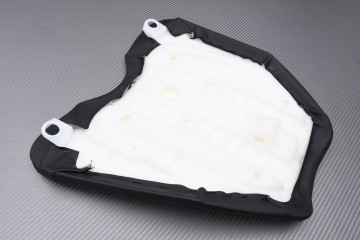 Produit neuf, en ABS injecté avec Mousse de rembourrage et revêtement en Simili-Cuir. De bonne qualité de fabrication et de finition. Rembourrée oui, mais que l’on soit bien d’accord, ça n’est pas une selle confort pour autant. Cela reste une selle avant quasiment identique à celle qui équipe votre moto à l'origine.