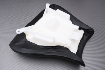 Produit neuf, en ABS injecté avec Mousse de rembourrage et revêtement en Simili-Cuir. De bonne qualité de fabrication et de finition. Rembourrée oui, mais que l’on soit bien d’accord, ça n’est pas une selle confort pour autant. Cela reste une selle avant quasiment identique à celle qui équipe votre moto à l'origine.