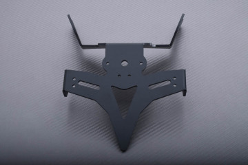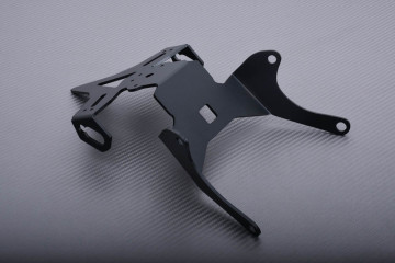 Support de plaque en acier, conçu pour se monter parfaitement sur les motos citées, sans modification à effectuer de votre part. Il se fixe directement sur les points de fixation de la bavette / support d'origine, pour que vous n'ayez pas besoin de repercer la coque arrière pour le montage.
