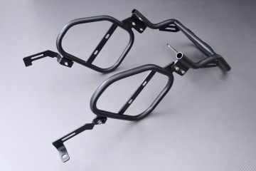 Ce sont des supports spécifiques à chaque moto, qui se fixent sur des points déjà existants sur la moto.