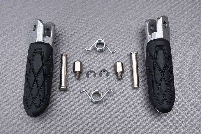 Spedito in coppia, questi poggiapiedi si montano senza alcuna modifica sui poggiapiedi d'origine. Hai semplicemente bisogno di recuperare il sistema di fissaggio dei tuoi vecchi poggiapiedi per montarli.