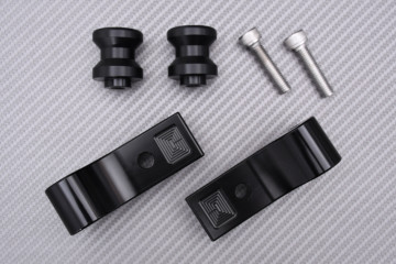 Quindi, per consentire l'utilizzo di un cavalletto a V, AVDB propone queste staffe che si montano al posto delle piastre di montaggio originali della moto.
